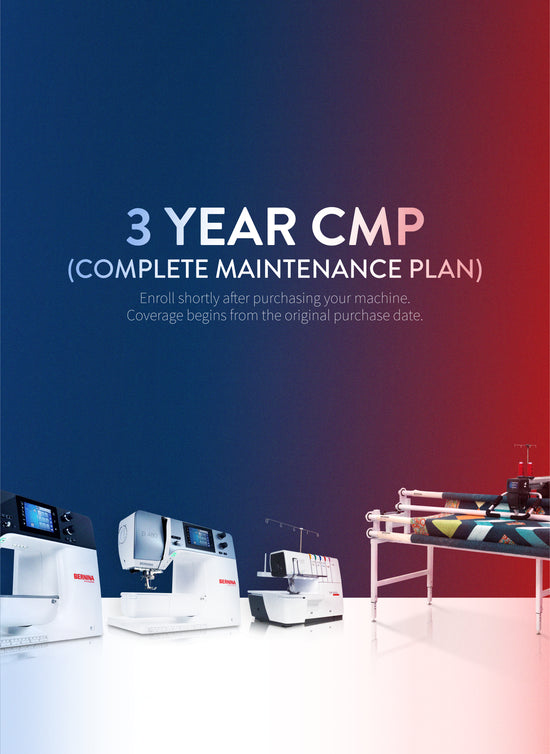 The CMP price depends on your machine’s original purchase price or type (e.g., sewing, embroidery, serger, longarm, or ScanNCut). Check the pricing tiers listed in the plan details. For example, a sewing machine costing $2,000 falls under the $399 plan. If you’re unsure, call us at 573-378-2700 for assistance.